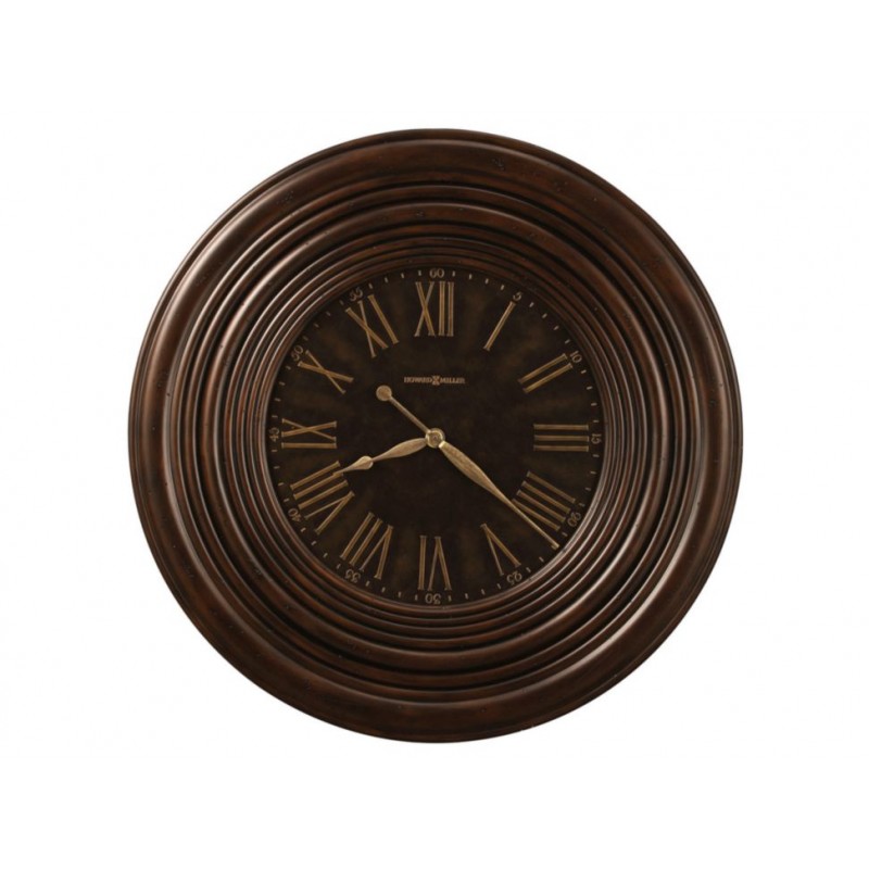 Reloj de gran tamaño, muestra un diseño en color Marrón, un marco ancho perfilado, carátula envejecida, números romanos y manecillas de latón con aspecto envejecido